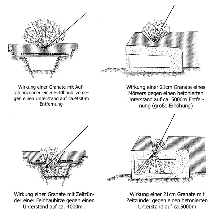 Anordnung der Ladung(en). Bei Geschossen, die in Bauwerken oder Panzerkuppeln